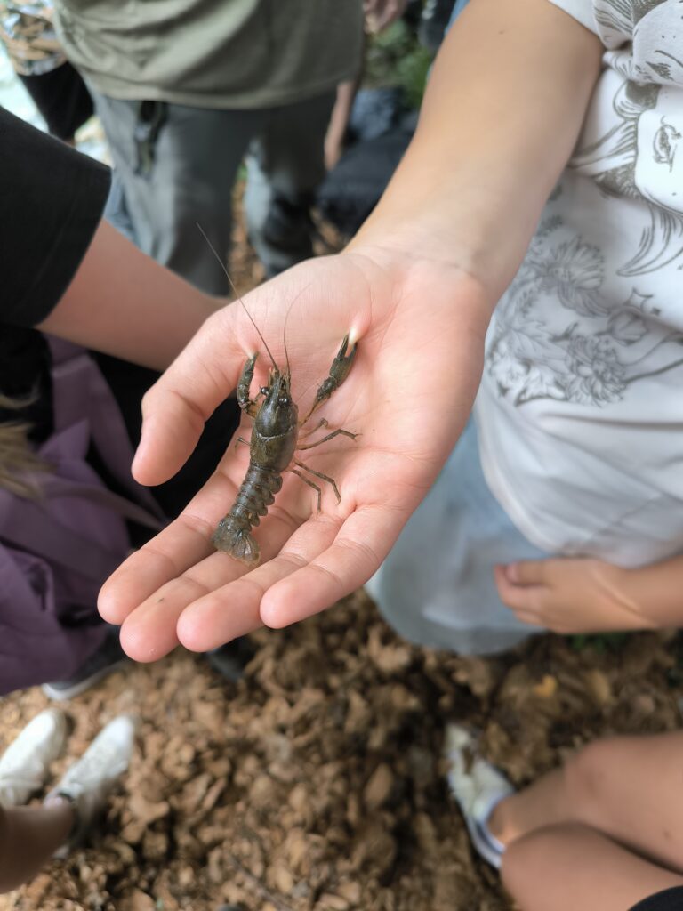 Ein besonderes Highlight war die Suche nach den Krebszuchtstationen entlang des Ufers. Dort erfuhren die Kinder, wie heimische Flusskrebse gezüchtet werden, um das ökologische Gleichgewicht im See zu erhalten. Der direkte Blick auf die winzigen Tiere begeisterte viele.